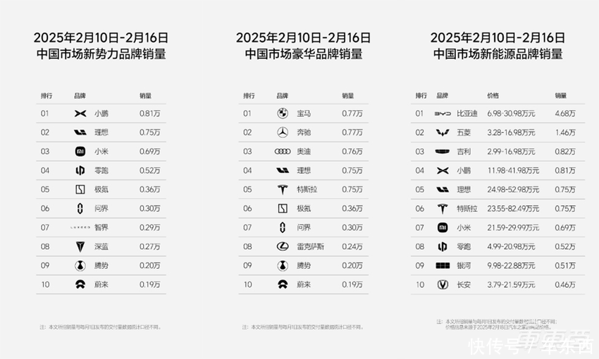 车东西2月18日消息,今日,中国市场新势力品牌2025年第7周(2.10-2.16)周销量等榜单公布。