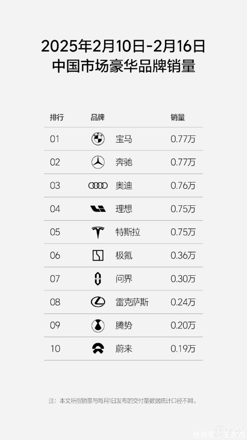 从第7周的中国市场豪华品牌销量榜来看,BBA重回榜单前三,周销量较2025年第6周(2.3-2.9)均有3000辆左右的增长。