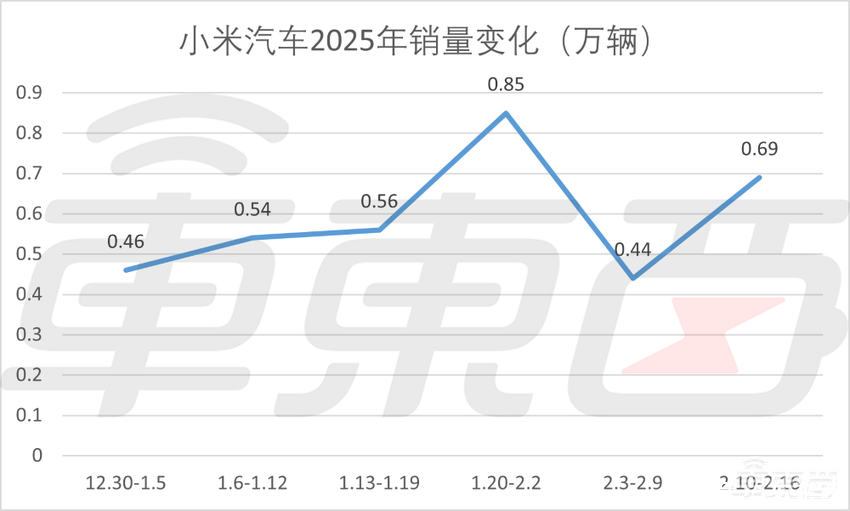 ▲小米汽车2025年销量变化(万辆)